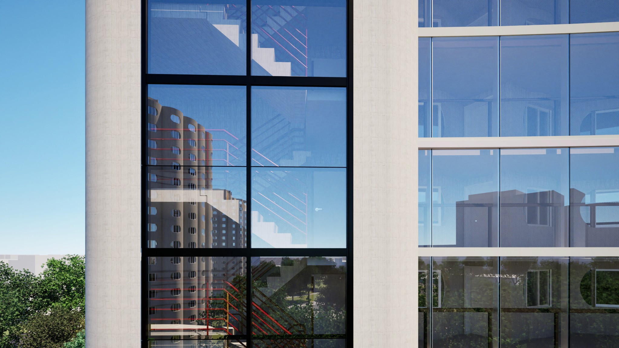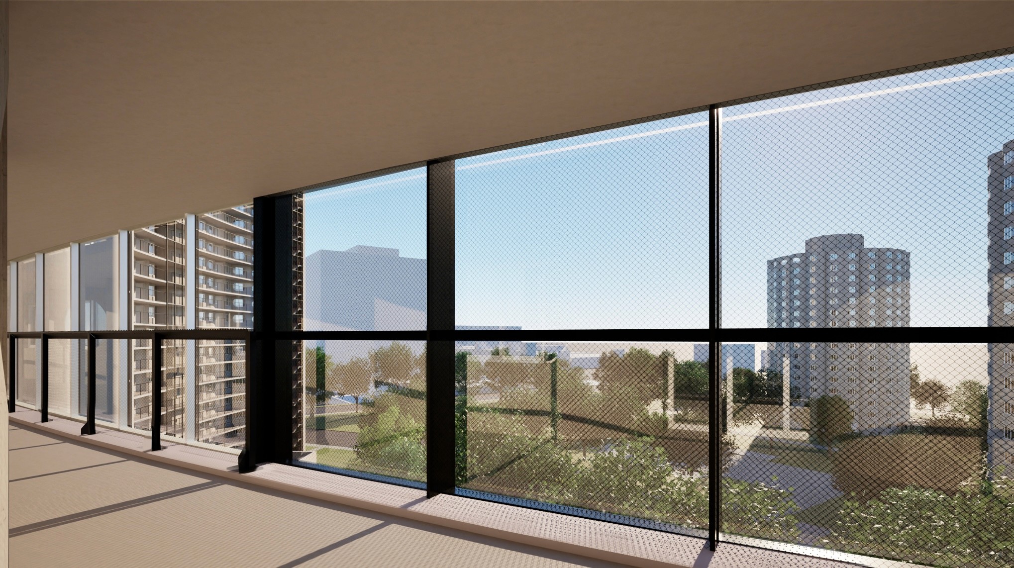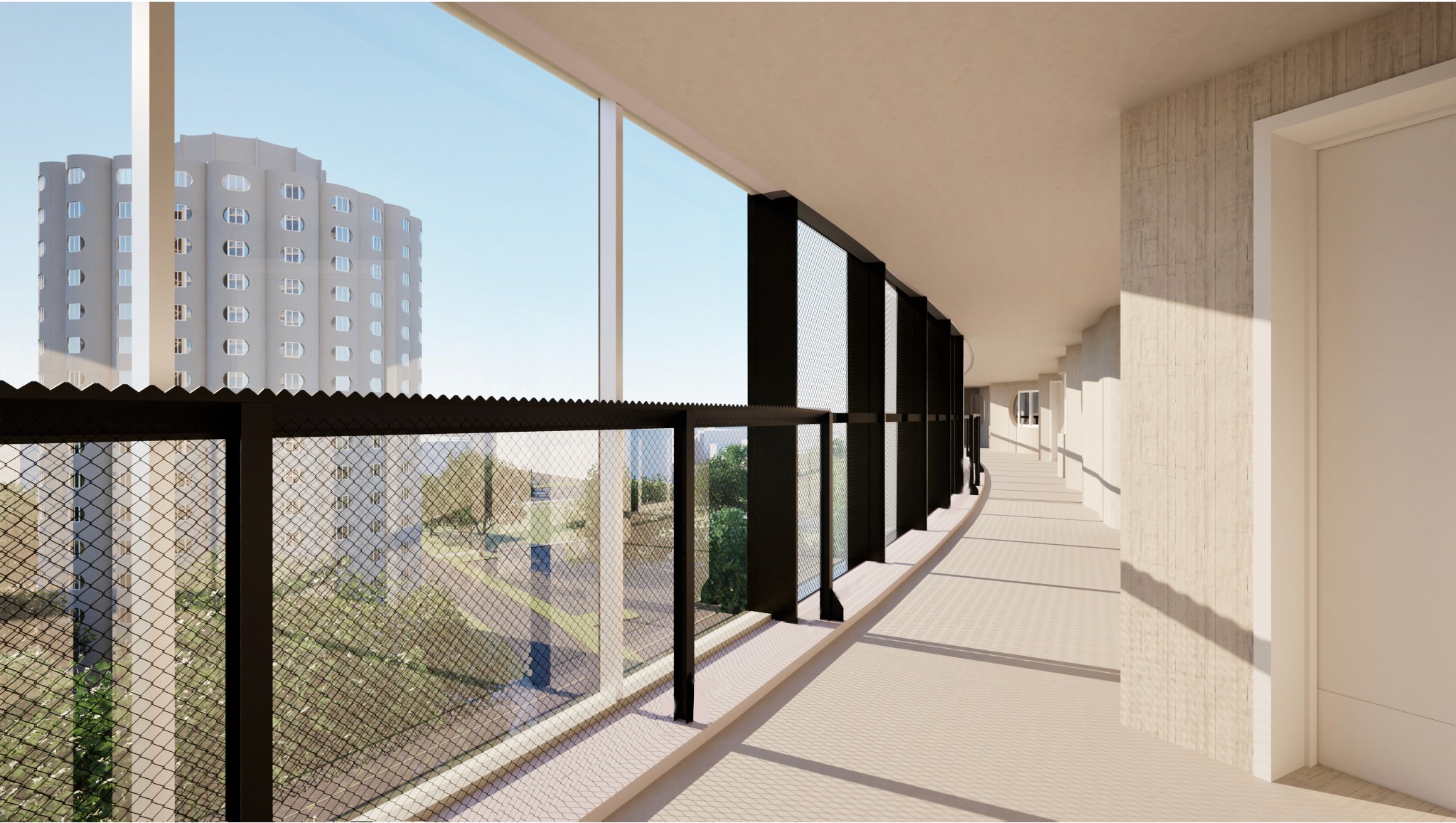 The scope focuses on enclosing the deteriorated open galleries of the family building’s south elevation with a high-performance curtain wall that protects historic concrete and railings, reinstalls repaired wire mesh panels inboard of the new façade, and enhances accessibility and vehicular access—balancing preservation with modern performance and resilience.