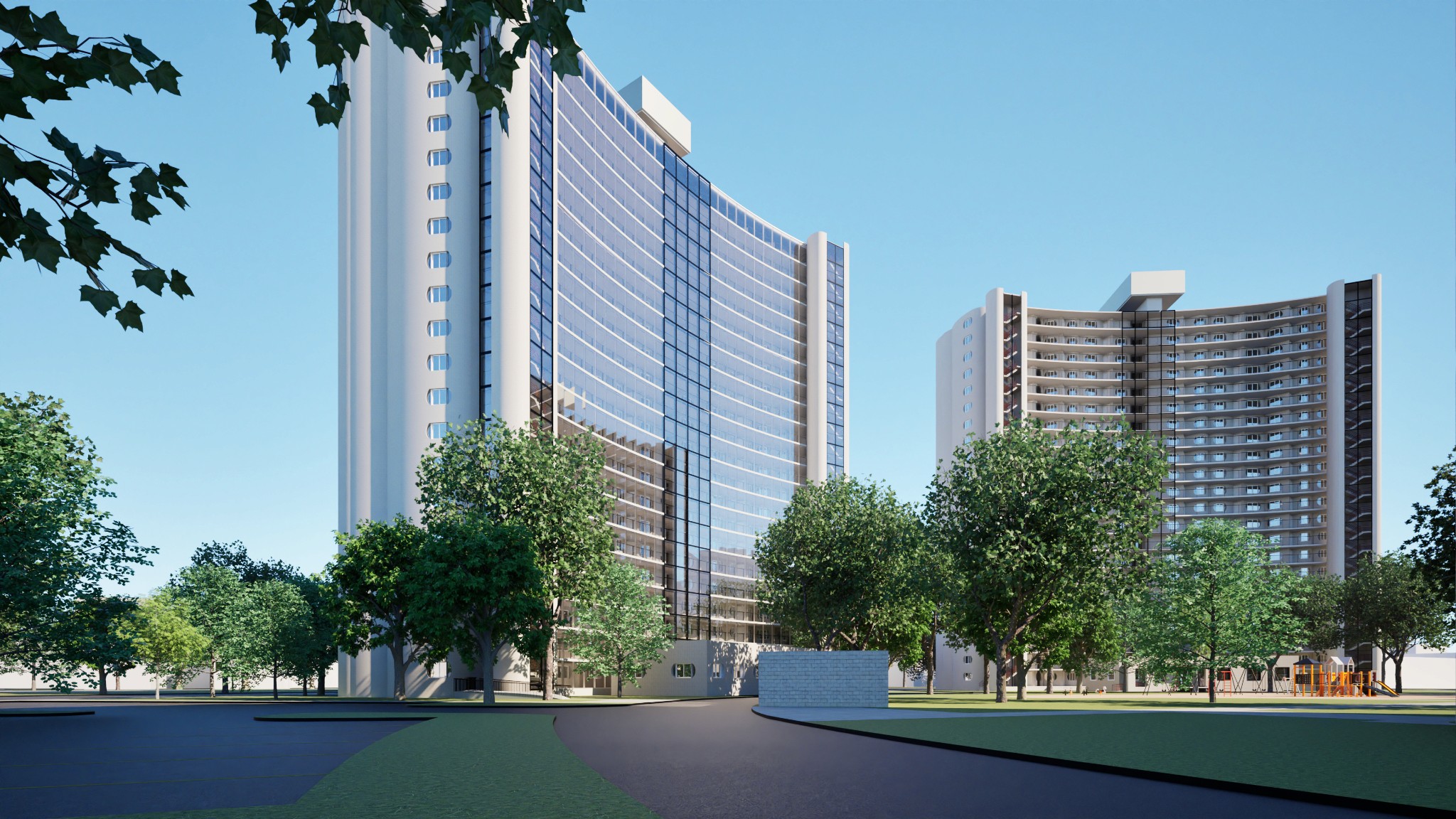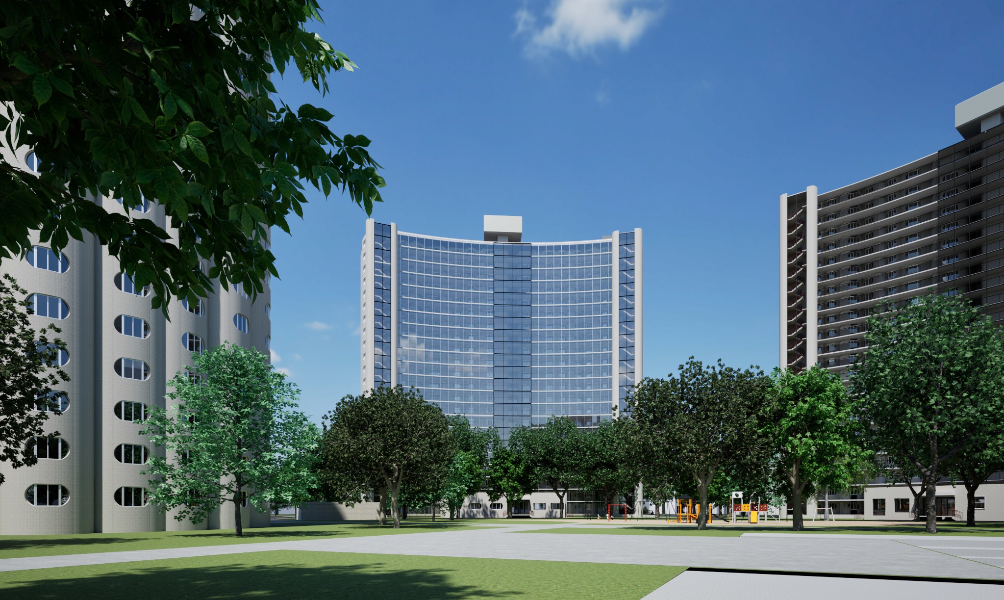 A historic preservation and rehabilitation of three buildings in the historic Hilliard Homes complex—a 22-story family building, a 16-story senior building, and a community center with connecting links at 2111 S Clark St. The project includes 151 family and 177 senior, mostly one-bedroom, apartments in total.