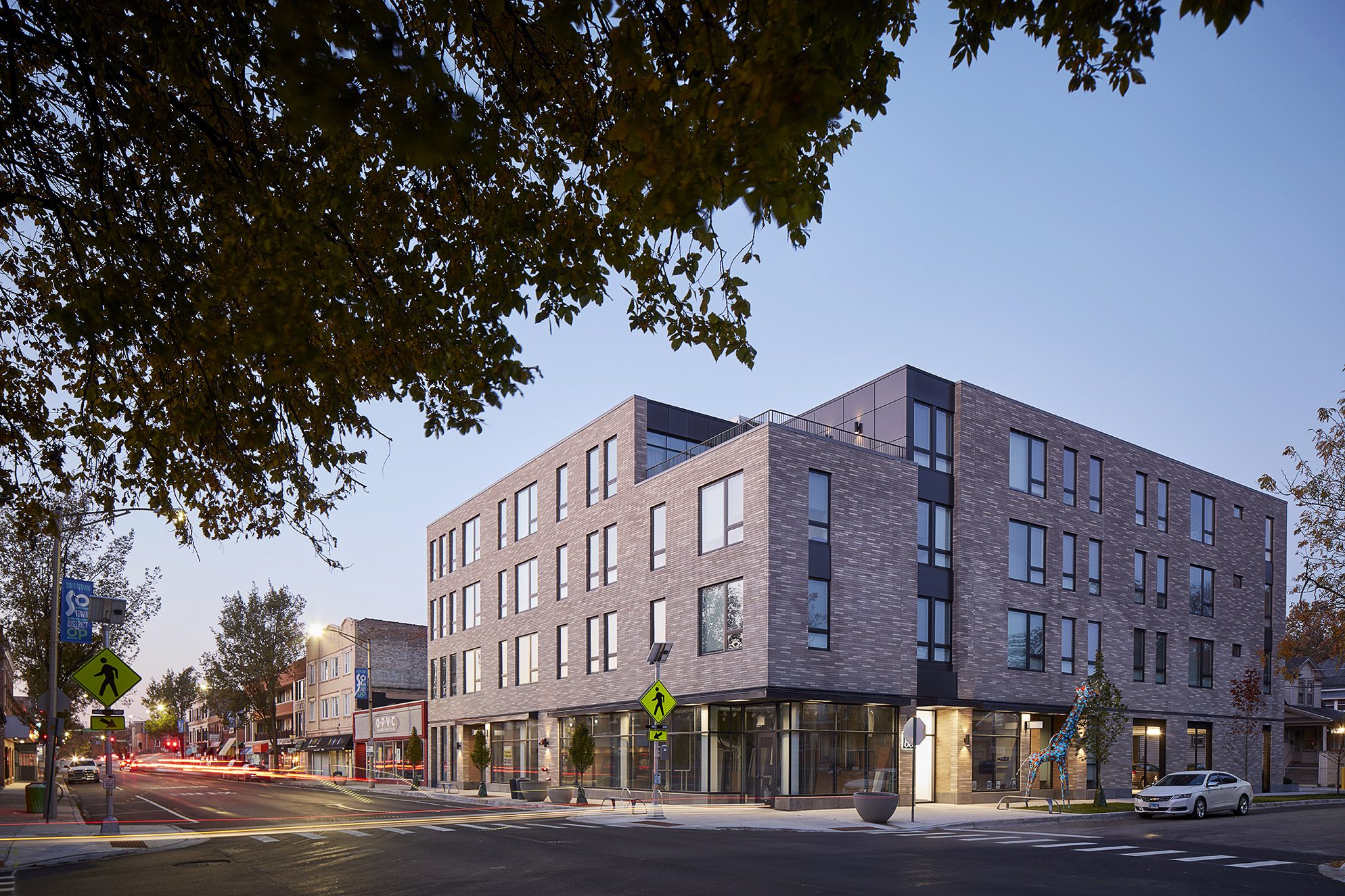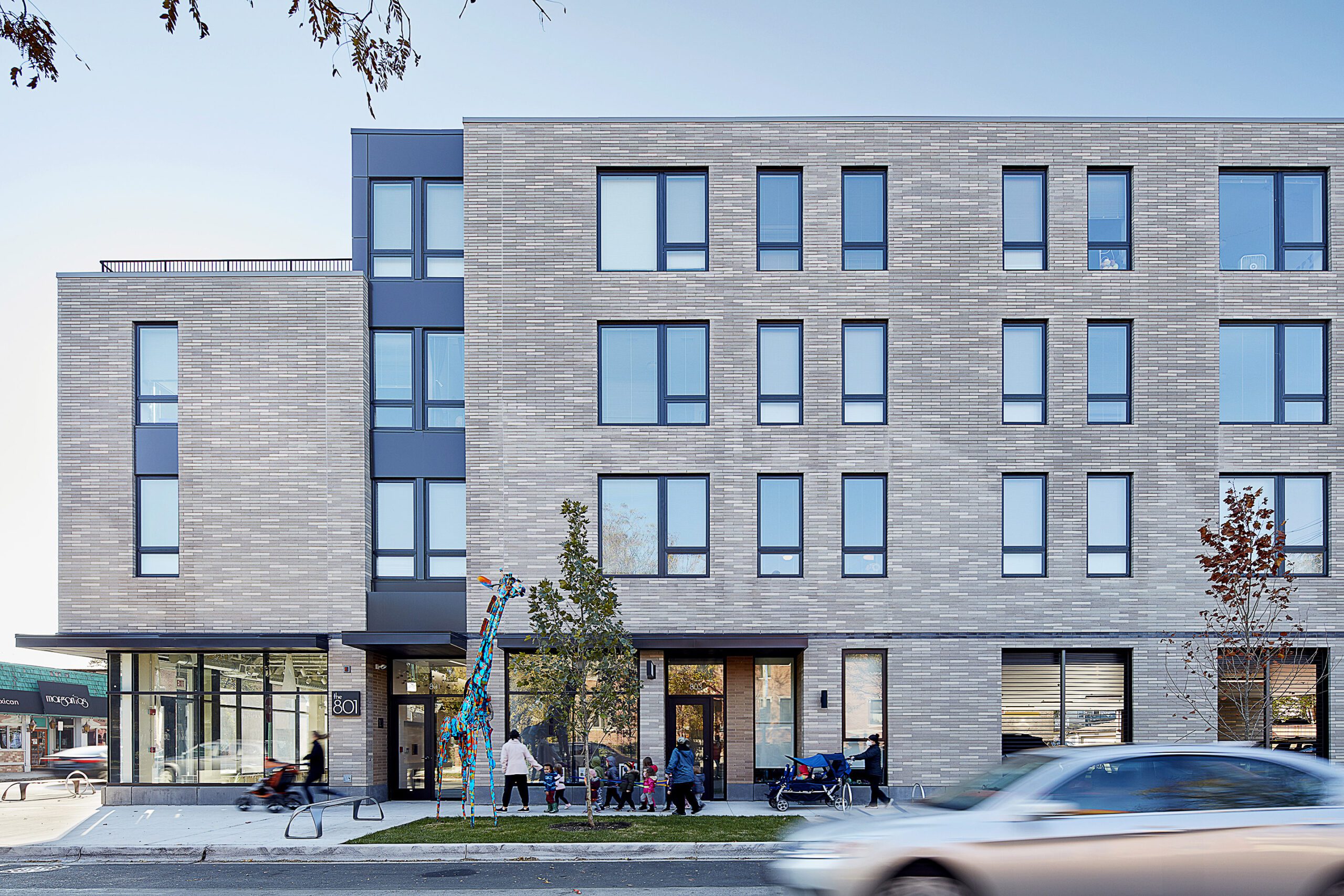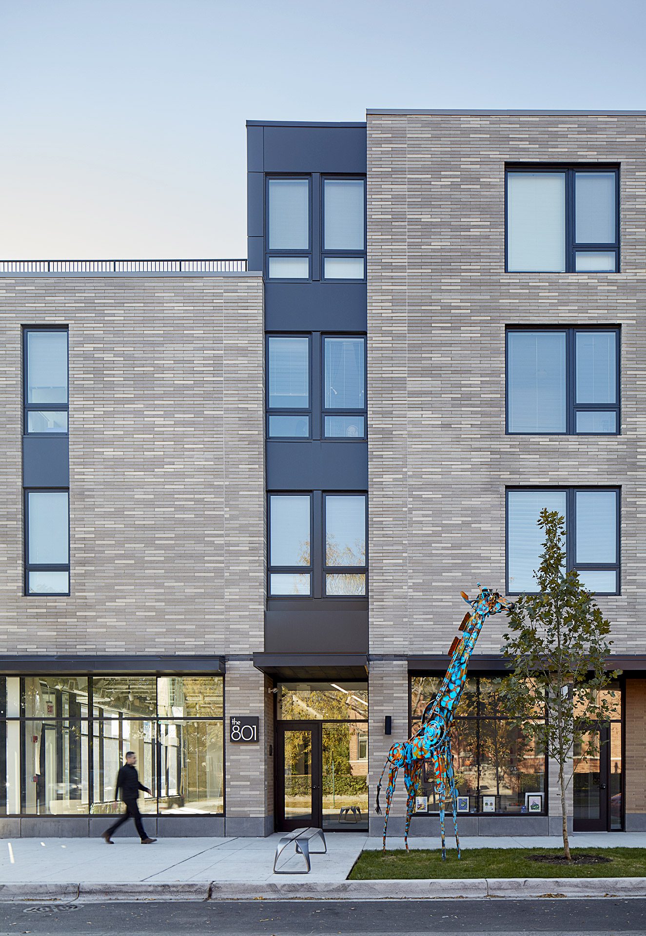 Located at the intersection of Oak Park Avenue and Van Buren, steps from transit in Oak Park’s Southtown business district, The 801 establishes a thoughtfully scaled mixed-use development that anchors a prominent gateway site while responding to the Village’s distinguished architectural heritage. Organized as a single, carefully articulated urban form, the building balances density, height, and neighborhood context to deliver high-quality attainable housing within a vibrant commercial corridor.